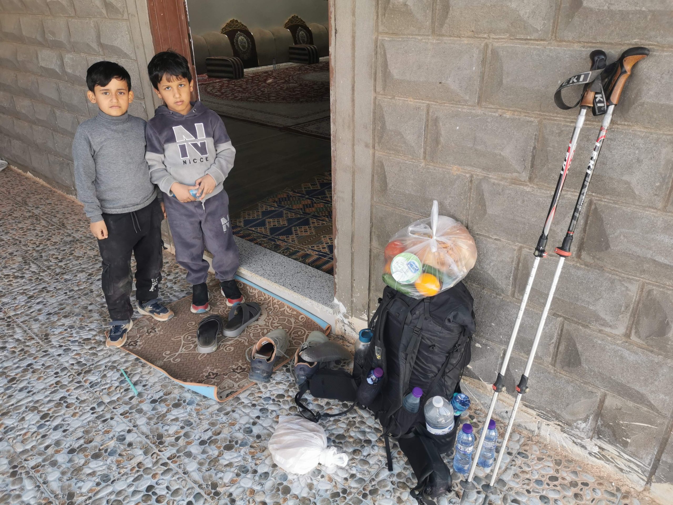 Nach knapp 30 km erreiche ich wieder eine Moschee im Nirgendwo. Ich wasche meine Füße, mein Gesicht, usw und richte mich in der Moschee ein.