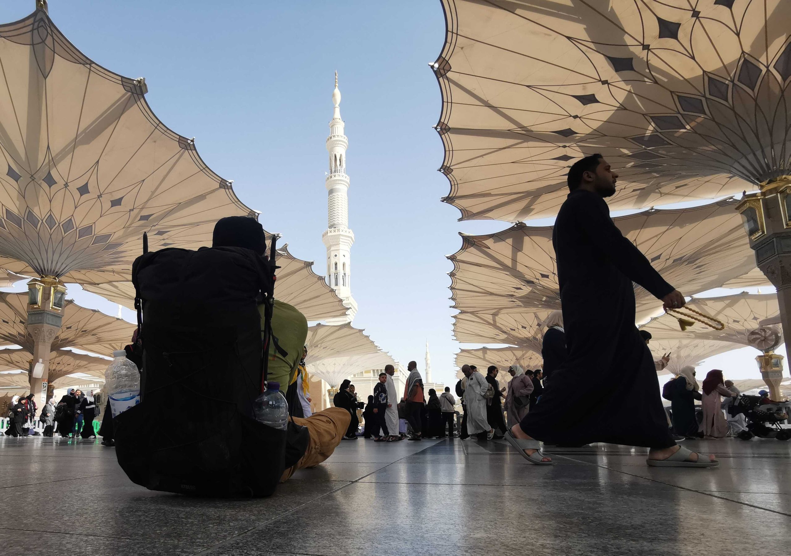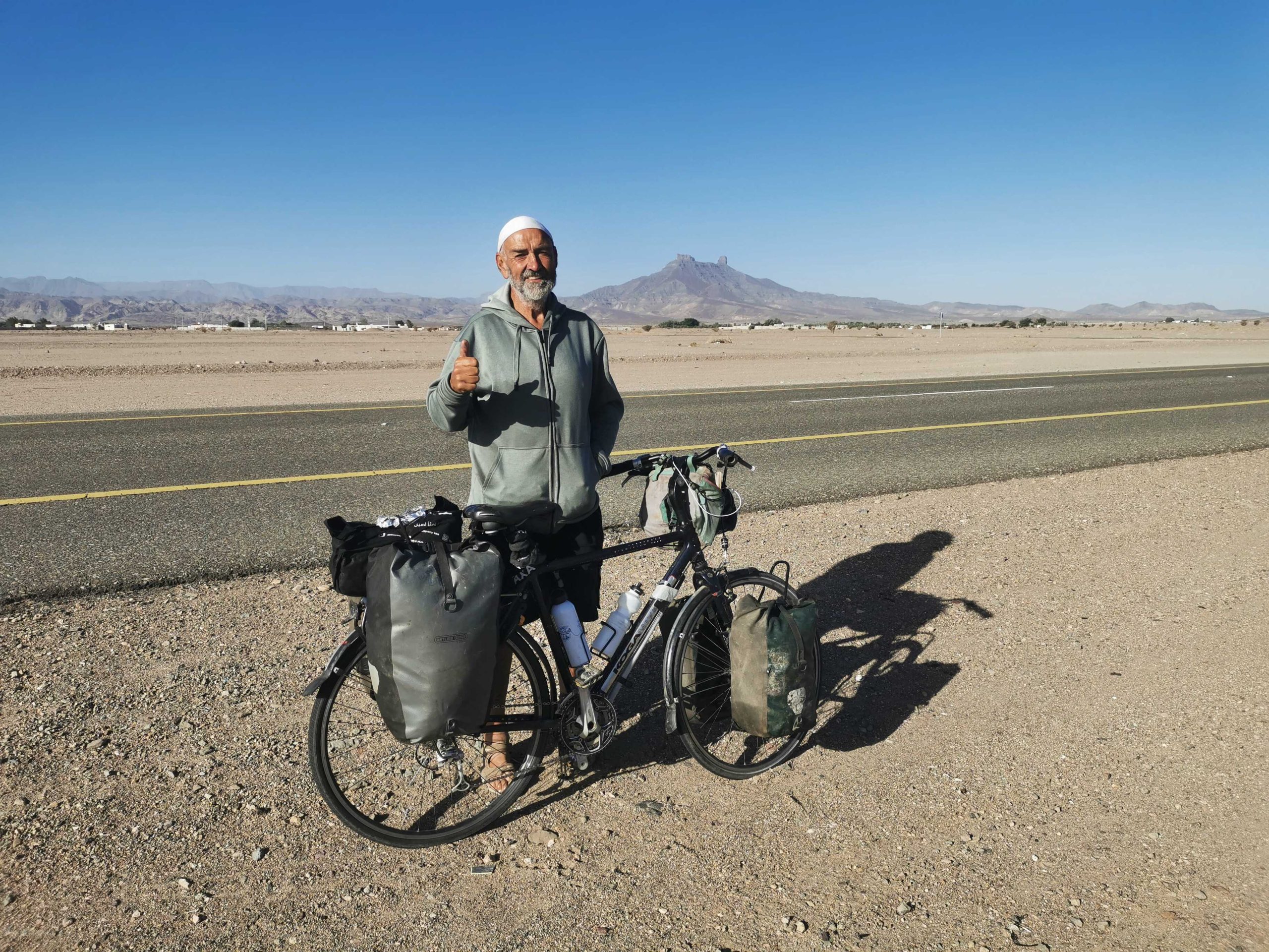 Es war ein langer und letztlich auch kräftezehrender Weg von Al’Ula hierher nach Medina. Über 350 km mit nur wenigen Versorgungsmöglichkeiten und Tankstellen. Letztlich waren es die Autofahrer, die mir das Leben leichter machten und mir täglich Wasser und Proviant aus den Fenstern reichten. Der starke Wind und zwei Sandstürme inmitten der Wüste setzten mir zusätzlich auch noch zu. Die Distanzen in diesem Land sind schon noch einmal anders als in Jordanien oder Israel. Die Polizei hat sich Gott sei Dank nach zwei Tagen wieder abschütteln lassen. Dank an alle Saudis und sonstigen Helfern auf dem Weg! Ohne Euch wäre diese Strecke nur sehr schwer machbar gewesen!