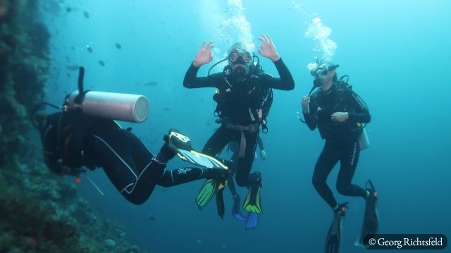 Retour am Schiff war danach natuerlich unter den ca 20 Tauchern die Freude und Stimmung gross und bei Sonnenuntergang erreichten wir wieder alle gesund und munter den Hafen von Labua Bajo.