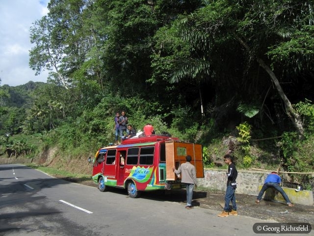 Via Ende, wo ich eine Nacht verbrachte und mir das Pelni Schiff Buero keine Auskuenft geben konnte wann ein Schiff weggeht von Flores, gelange ich in das kleine Bergdorf Moni. Hier sind vor allem die drei Kraterseen des Vulkans Kelimutu sehenswert. Mit einem ausgeliehenen Moped fahre ich den Vulkan hinauf und verbringe oben einen wunderschoenen sonnigen Nachmittag bei den Seen, die noch dazu alle eine andere Farbe haben. Mich zieht es allerdings schon nach Maumere, wo es wieder einen Hafen gibt und ich meine Reise in Indonesien mit dem Schiff fortsetzen kann. Gestern erfuhr ich vom Pelni (staatliche Schiffsgesellschaft) Buero in Maumere, dass am Samstag, 24.6. um 6 Uhr frueh ein Schiff nach Makassar, der Haupstadt Sulawesi’s geht. So verbringe ich hier auf der vor allem von katholischen Christen bewohnten Insel Flores noch zwei ruhige Tage bevor ich wieder in See steche…:-) Grad recht um am 25. und 26.6. im muslimischen Sulawesi das Idul Fitri Fest (Ende des Fastenmonats Ramadan) mitzuerleben. Ich selbst hatte mir ja vorgenommen waehrend des Ramadans zumindestens keinen Zucker und Suessigkeiten zu essen, was mir bisher gut gelungen ist. Keine Angst, ich werde nicht konvertieren…:-)